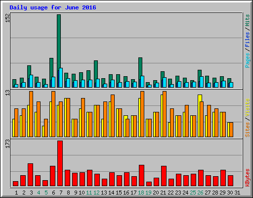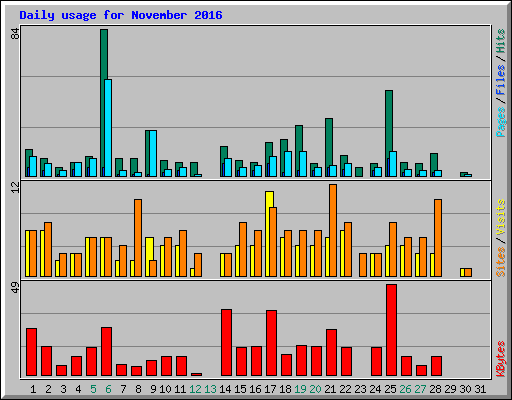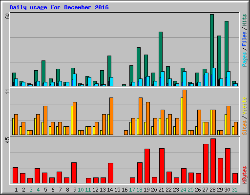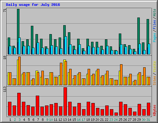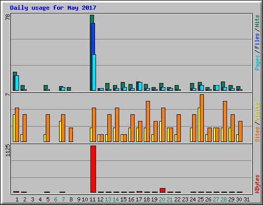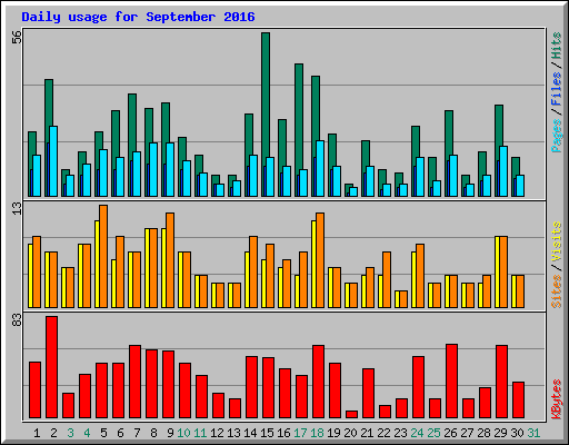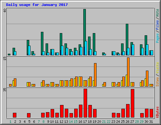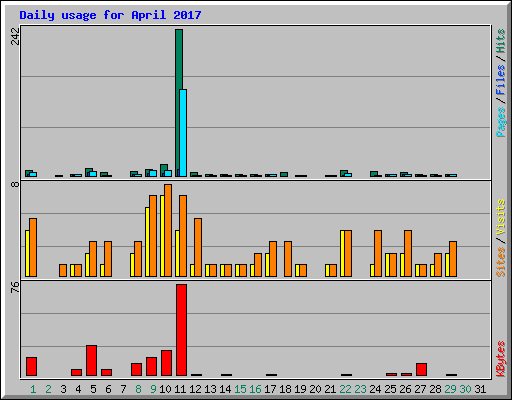 | Day | Hits | Files | Pages | Visits | Sites | KBytes | ||||||