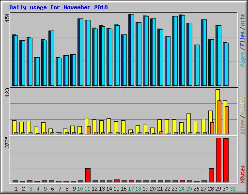 | Day | Hits | Files | Pages | Visits | Sites | KBytes | ||||||