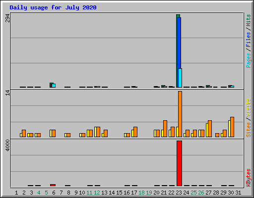 | Day | Hits | Files | Pages | Visits | Sites | KBytes | ||||||