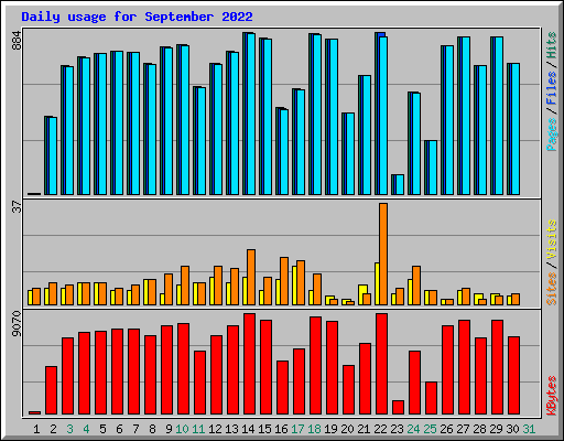| Day | Hits | Files | Pages | Visits | Sites | KBytes | ||||||